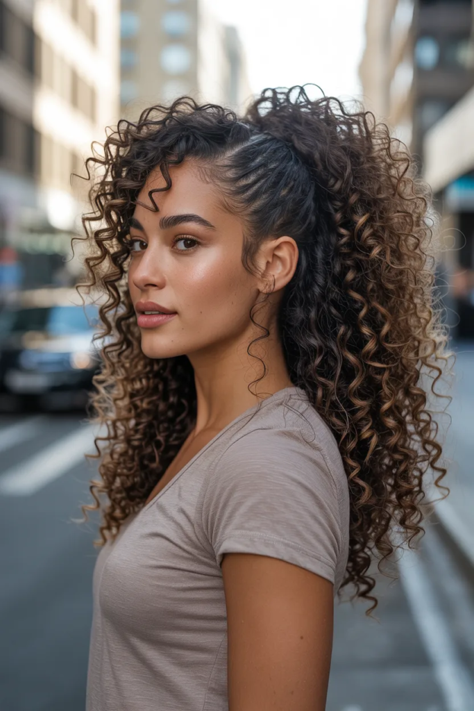 A curly ponytail might sound simple, but when done right, it’s anything but basic. By adding volume at the crown and letting your curls cascade down, you get a look that feels youthful and stylish.