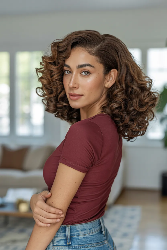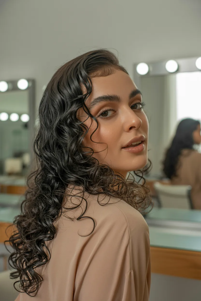 Soft, brushed-out curls give a more relaxed wave appearance while still maintaining that signature curly texture. This style works beautifully if you want something that feels both effortless and red-carpet inspired.