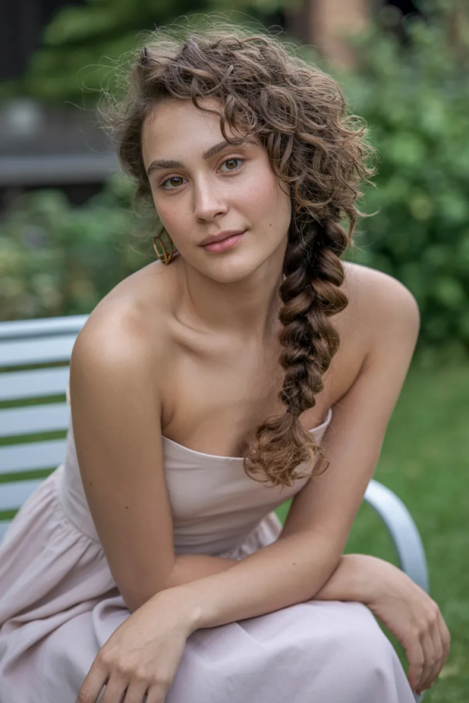 A loose side braid combined with curls gives off a soft, romantic vibe that feels perfect for prom night. The braid doesn’t need to be perfect—in fact, a slightly messy finish makes it even prettier and more natural.