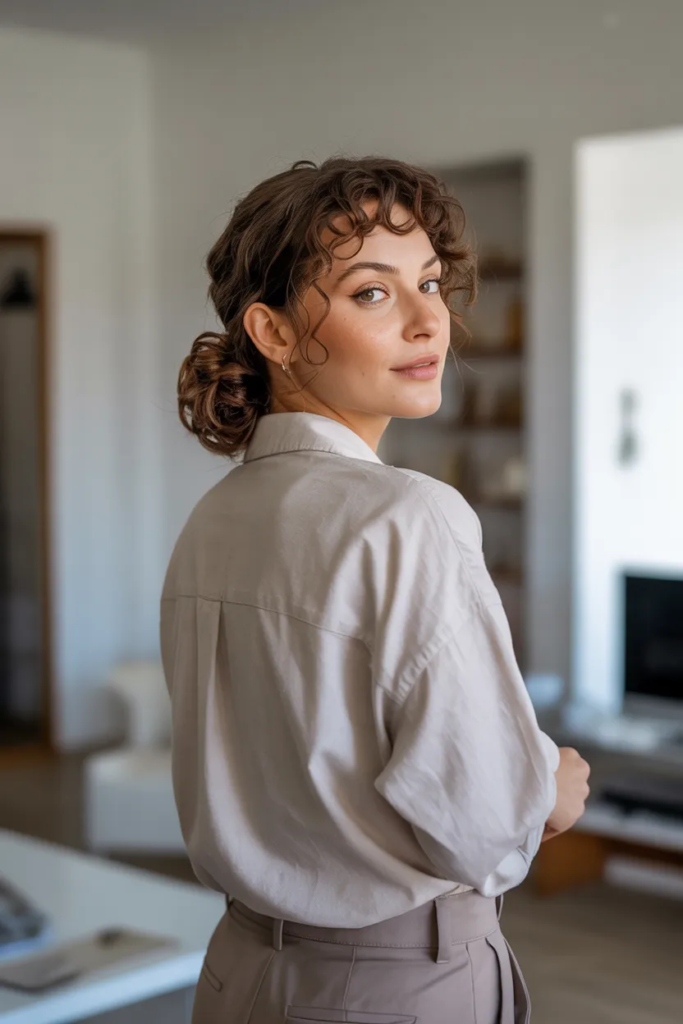 Let some curls fall out naturally to keep the look light, airy, and effortlessly beautiful. This style works especially well if you love a relaxed yet feminine aesthetic.
