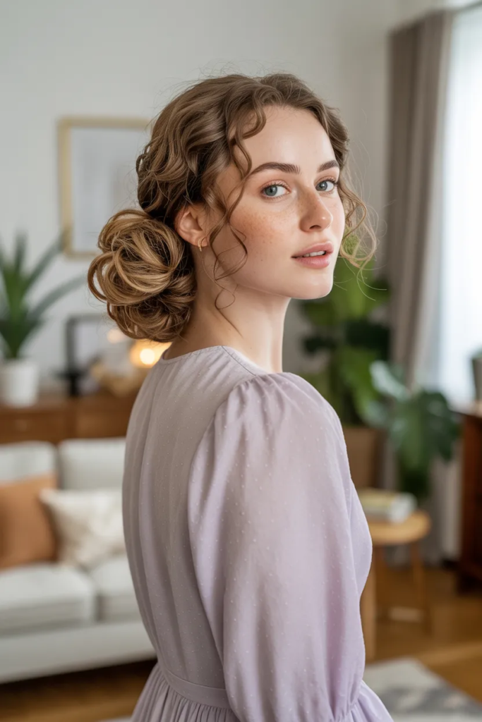 A chignon is a classic for formal events, and when combined with curls, it becomes even more beautiful and visually interesting. The texture adds depth, making the style feel less rigid and more modern compared to traditional sleek versions.
